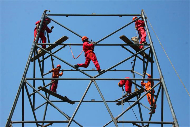 井字形鉆塔施工現(xiàn)場裝配