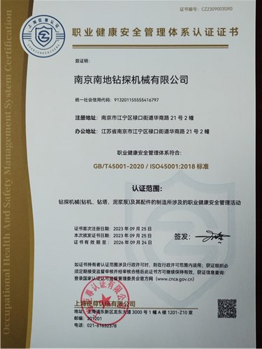 企業(yè)通過(guò)ISO9001:2015質(zhì)量管理體系認(rèn)證、ISO14001:2015環(huán)境管理體系認(rèn)證、ISO45001:2018職業(yè)健康安全管理體系認(rèn)證。