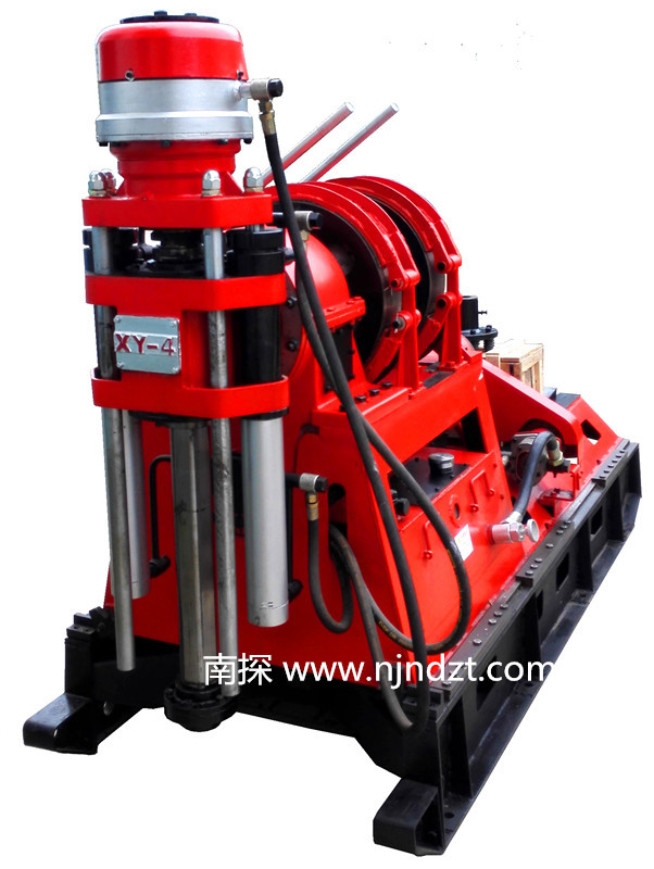 XY-4型鉆機是機械傳動液壓給進的巖芯鉆機,用42mm鉆桿能鉆1000米的孔。主要用于地表及坑道對固體礦床的金剛石、合金鉆探,可用于工程地質勘察及地下水勘探,淺層石油,天然氣勘探、堤壩灌注、坑道通風、排水鉆探等工程孔鉆進。